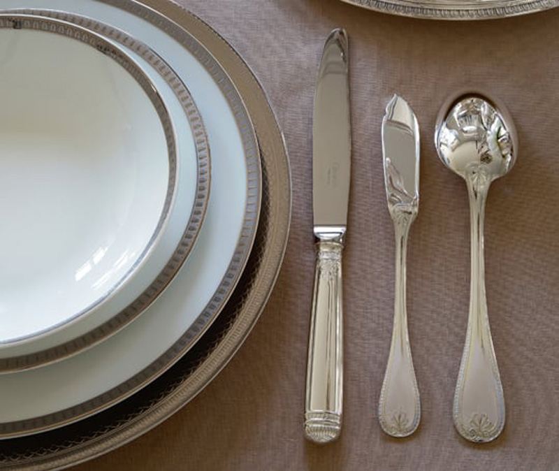 Model Empire by excellence, Malmaison bears the name of the castle which was the favorite holiday resort of the Emperor Napoleon Bonaparte and the Empress Josephine. Resolutely chic, its ornaments, openwork leaves and symmetry of the decorations, give a statutory imprint to the table and to all the moments that live there.