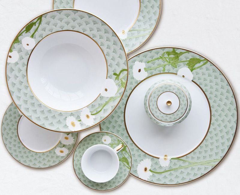 Praiana draws inspiration from the Art Nouveau style; multiform and international, this movement is that of curves and arabesques. Freely inspired by nature, it is a pure product of the Belle Epoque. The bias towards the Praiana table service is to have created a very enveloping decor on all the pieces of the service reminiscent of precious objects dressed in shagreen very popular in the 20s.