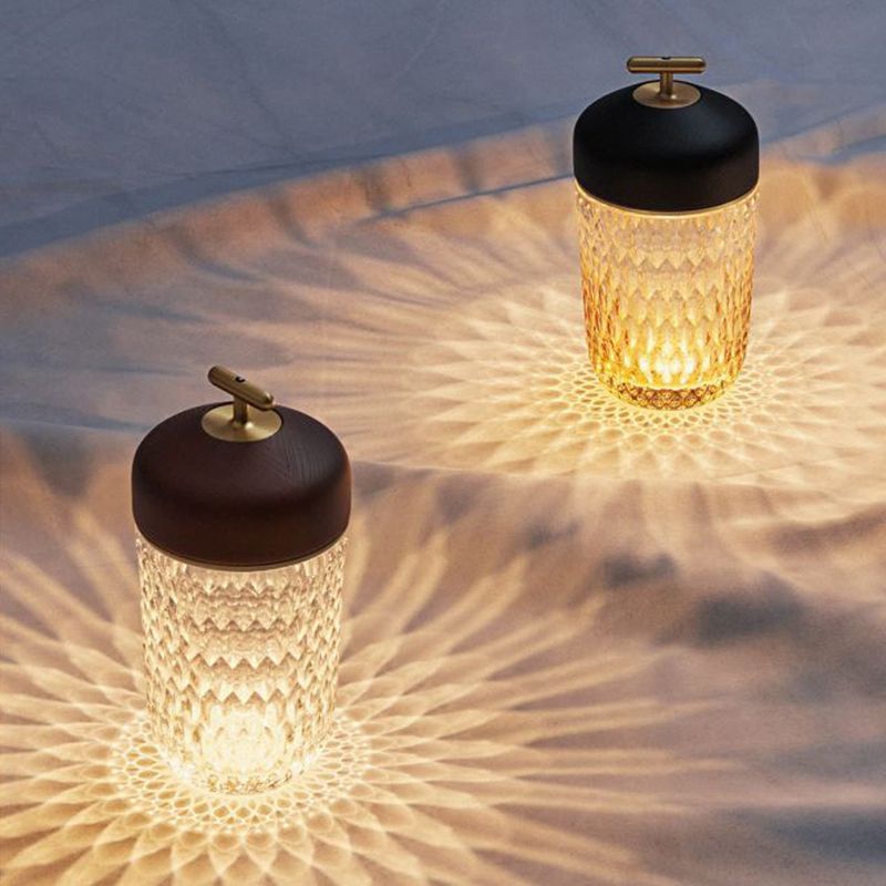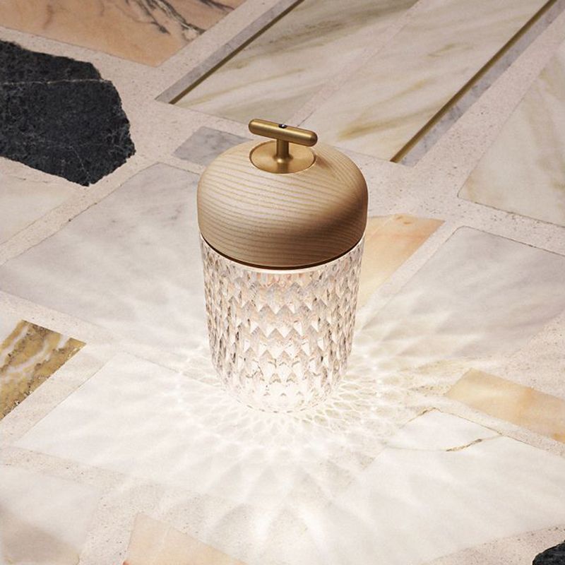 Lampe de table, de bureau, pour la terrasse ou le bateau, la baladeuse Folia s’intègre dans tous les styles de décoration grâce à son design contemporain. Le cristal, taillé de biseaux disposés en quinconce, crée un motif géométrique surprenant, démultiplié par la lumière.