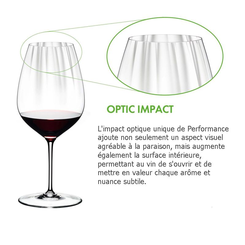 Performance est la première série de verres à vin de Riedel à être équipée de calices avec un léger EFFET D'OPTIQUE.