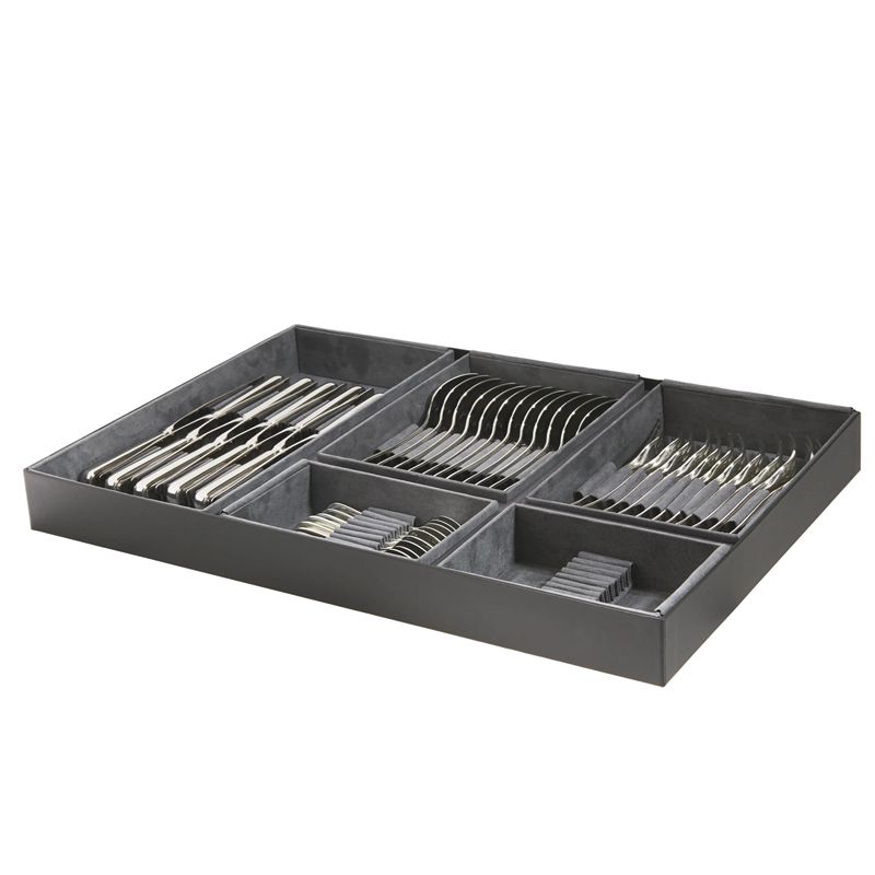 It has 5 modules containing removable supports to store your cutlery and prevent them from being scratched. These modules are coated with an anti-oxidant fabric , which delays the oxidation of the cutlery. They can be stored in the Christofle storage box or can be easily put in the drawers in your kitchen or in any piece of furniture.