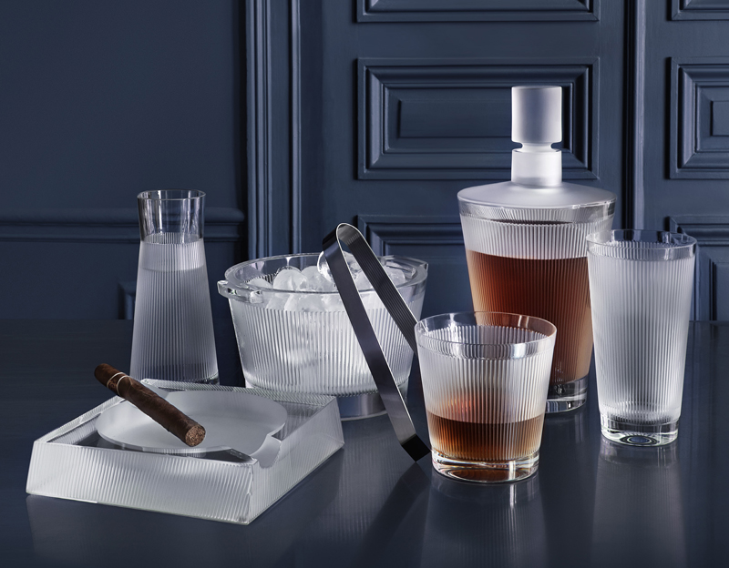 Le service Wingen porte le nom du village d’Alsace où la Manufacture Lalique perpétue son savoir-faire exceptionnel. Dans les années 1920, René Lalique avait créé un service de verres du même nom, au graphisme semblable. Ordonnées dans une rigueur rythmique, les lignes godronnées en cristal satiné, repoli, emblématique de Lalique et affichent leur élégance intemporelle.