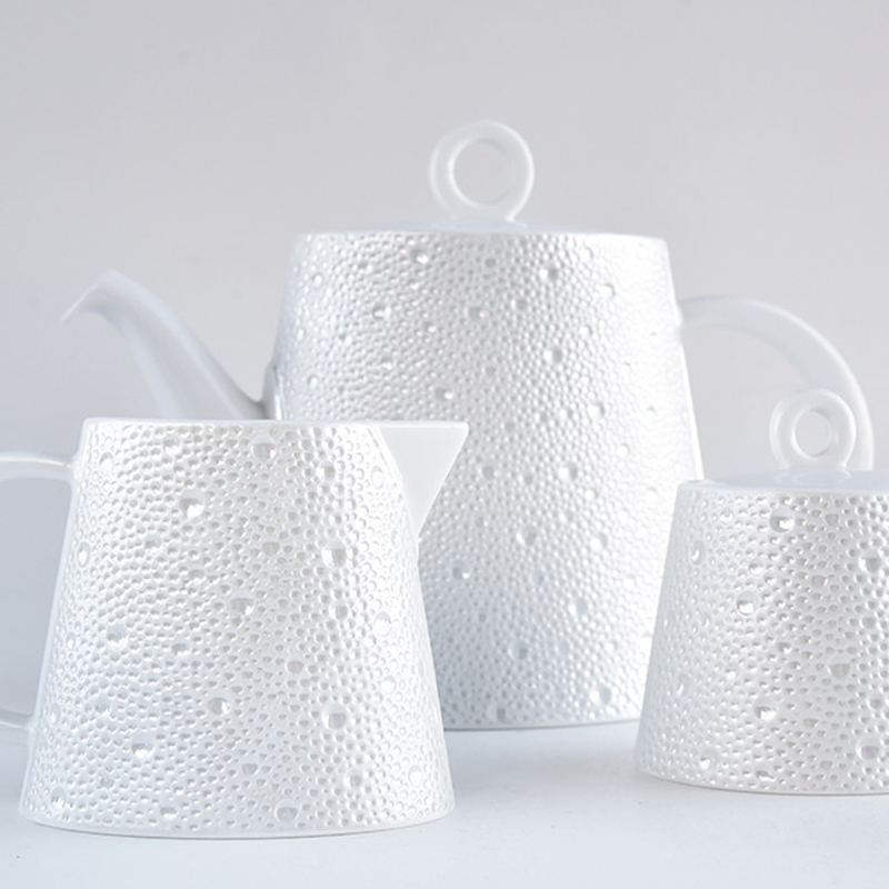 A subtle mother-of-pearl veil has been applied to the plates and saucers of the Ecume collection, allowing the décor to vibrate differently thanks to this iridescence. You can use it as is or combine it with Ecume white.