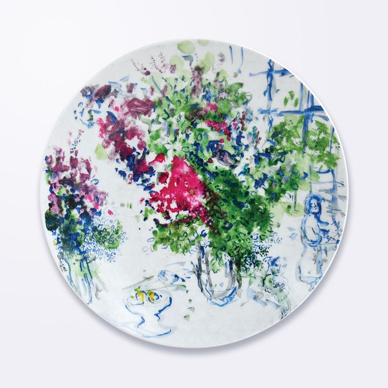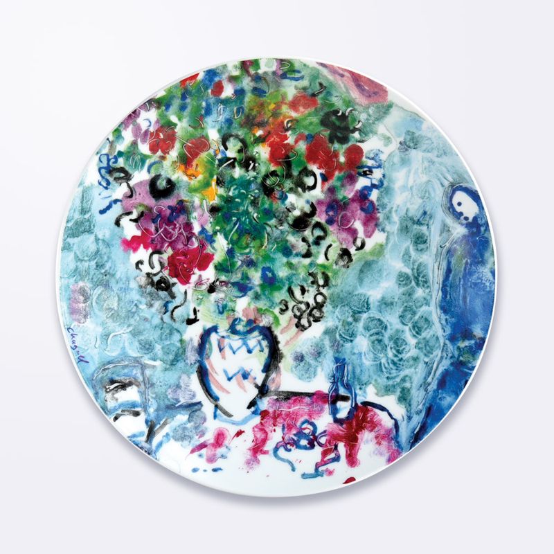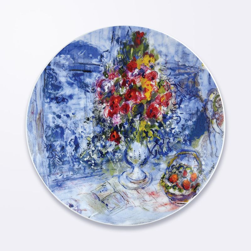 Tout comme l’ange, l’acrobate ou l’autoportrait, le bouquet de fleurs, devient dans la peinture de Chagall l’expression d’un élément iconographique qui nous élève également vers une sphère spirituelle, symbolisant, entre autres, l’offrande. Par la présence des fleurs, se décline immédiatement la quête éternelle de l’idéal qui nous conduit vers un monde coloré d’excellence et de beauté dont l’aspect continue à susciter notre interrogation.