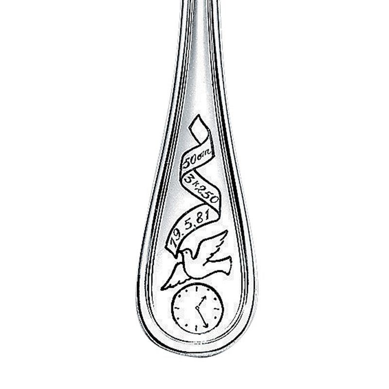 La cuillère naissance a été conçue pour la date, l'heure de naissance, le prénom, le poids et la taille du bébé puissent y être gravés.