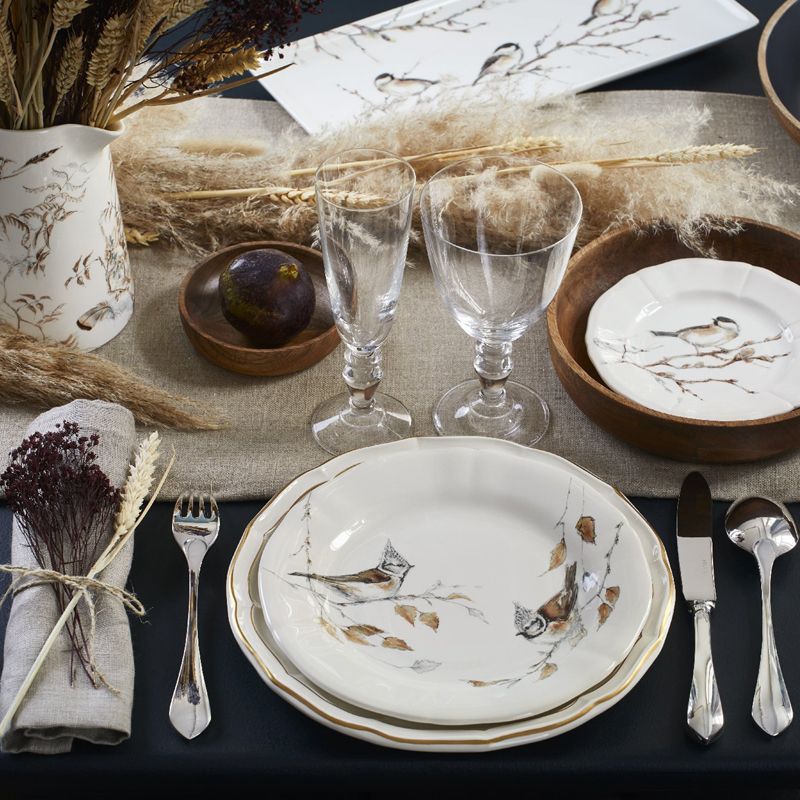 La poésie des chants d'oiseaux, aux couleurs empreintes de sérénité, douceur et légèreté. Ce thème joue sur des harmonies de couleurs apaisantes, sur les coloris de la forêt, de l'automne : ocre, marron, beige cuivrés, avec quelques accents de couleurs plus lumineuses et joyeuses.