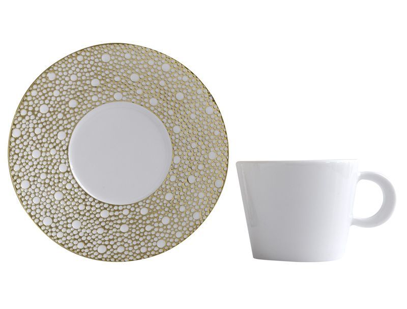 A new version for the Ecume collection with subtle material effects and the enameling work. The gold comes to rest on the wing of the plate while the intaglio, contemporary and poetic, remains white. Choosing the collection Foamy Ecume is the assurance of a table of great elegance and modernity!