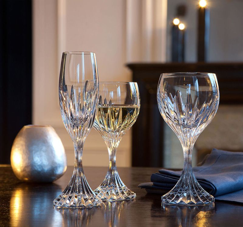 Masséna glass illustrates Baccarat expertise. Directly cut in clear crystal, the deep bevels in organ play radiate from the foot to the base of the chalice.